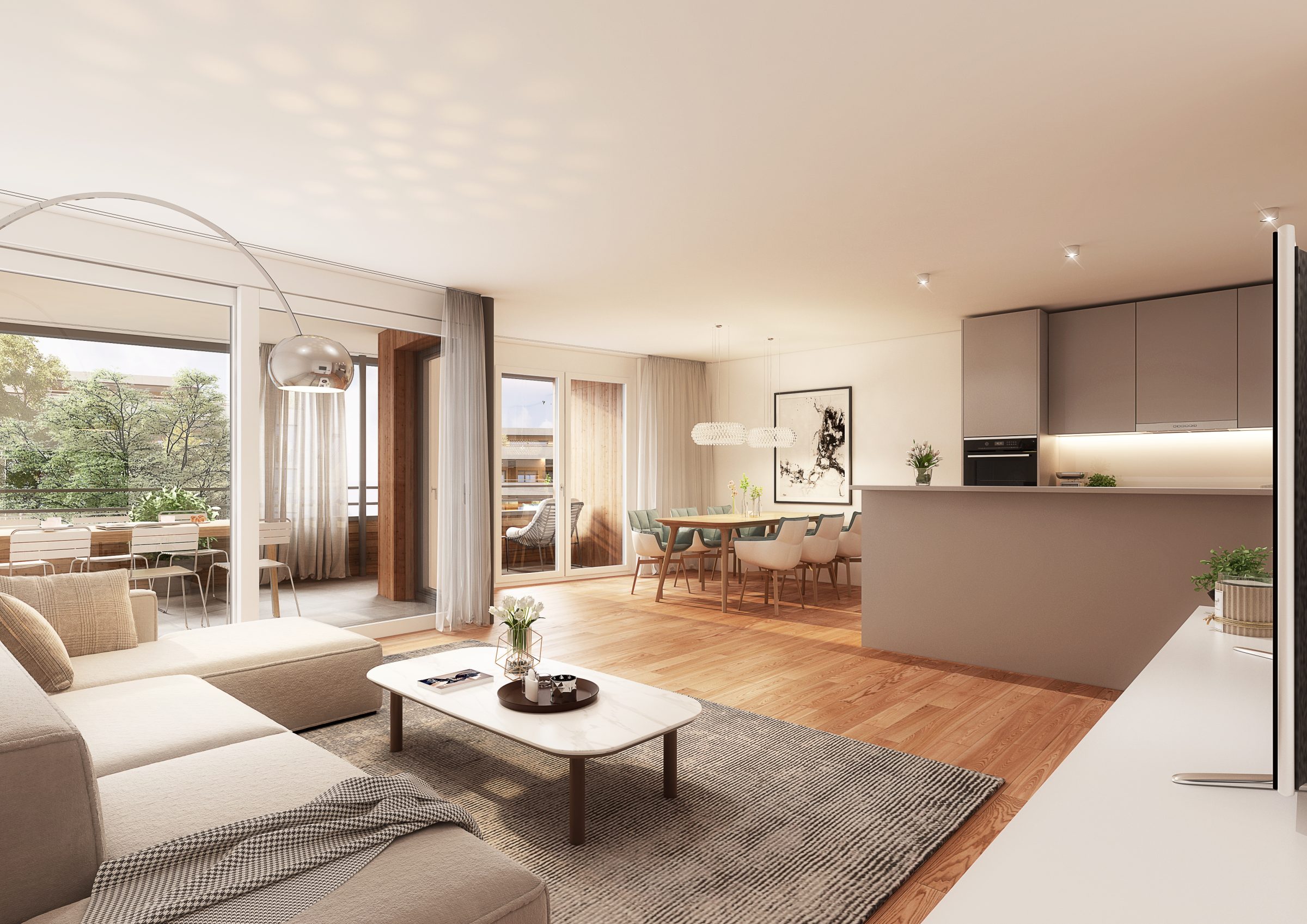 Ihr neues Zuhause im Haus S3 bietet zahlreiche Vorteile, darunter gut geschnittene Wohnungen mit hoher gestalterischer Qualität, eine moderne und energieeffiziente Bauweise, eine parkähnliche Umgebung mit vielfältigen Möglichkeiten zum Aufenthalt und Spielen sowie eine zentrale Lage, die trotzdem sehr sonnig und ruhig ist.